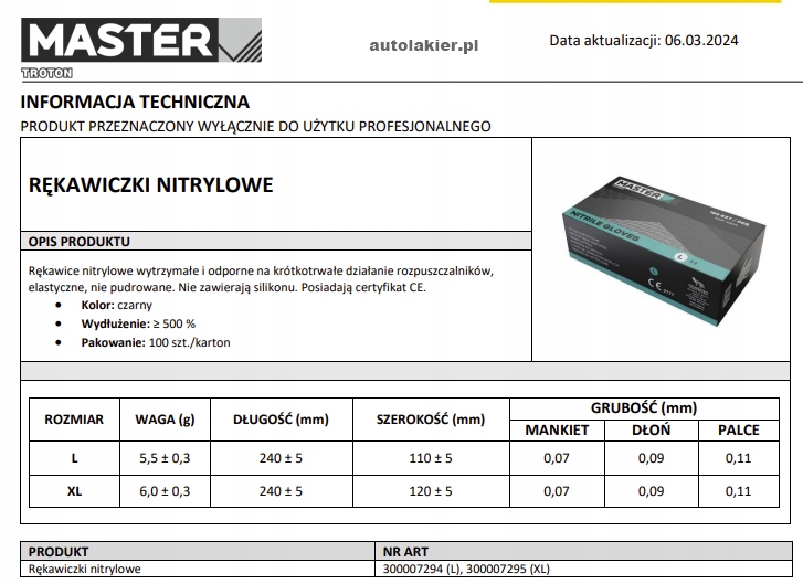 Rękawice ochronne posiadają długi rękaw (około 240 ± 5 mm).