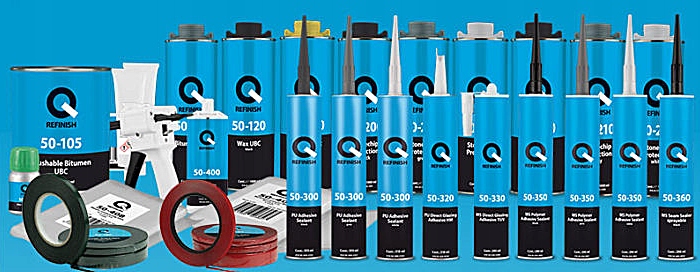 Q-REFINISH poliuretanowa masa klejąco-uszczelniająca jest jednoskładnikową masą, która przy udziale wilgoci zawartej w powietrzu tworzy mocne uszczelnienie.