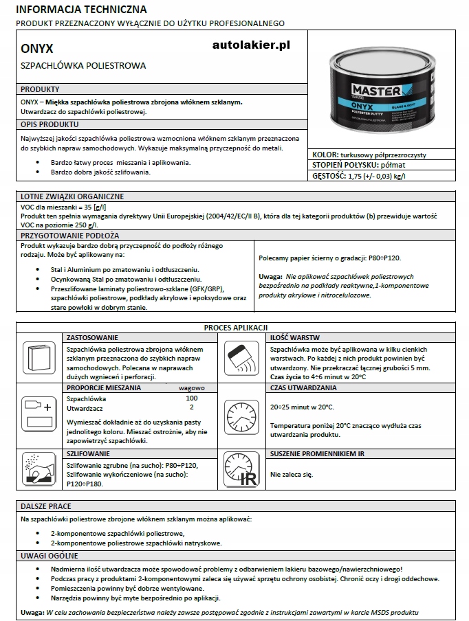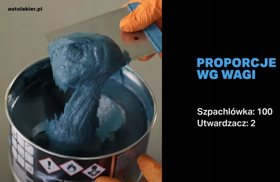 Uwaga: Nie aplikować szpachlówek poliestrowych bezpośrednio na podkłady reaktywne, 1-komponentowe produkty akrylowe i nitrocelulozowe.