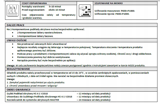 Wysoka zawartość i jakość żywic (podkład klasy HS) oraz zastosowanych dodatków pozwala uzyskać bardzo dobre wypełnienie, ochronę antykorozyjną i wyjątkową jakość powierzchni.