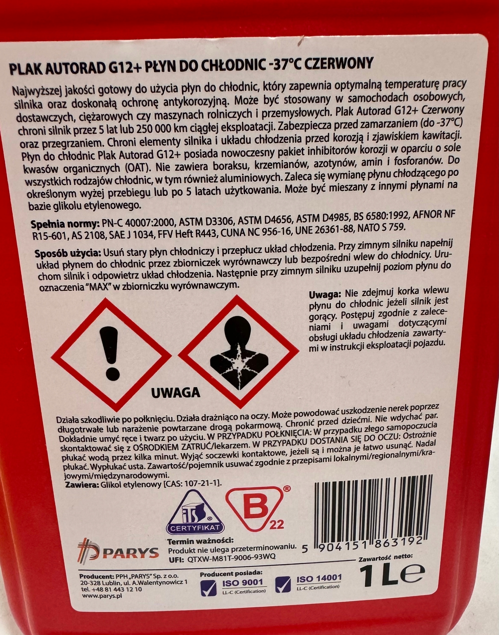 Najwyższej jakości gotowy płyn do chłodnic o przedłużonej żywotności do 5 lat lub 250 000 km ciągłej eksploatacji, wyprodukowany na bazie glikolu etylenowego.