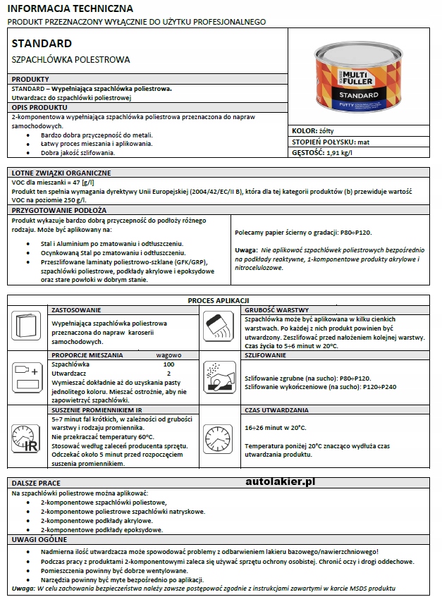 2-komponentowa wypełniająca szpachlówka poliestrowa przeznaczona do napraw samochodowych.