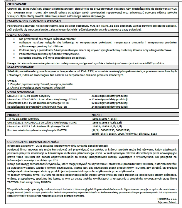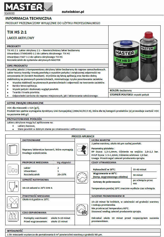 Utwardzacz izocyjanianowy do dwuskładnikowych lakierów akrylowych 2K HS bezbarwnych.