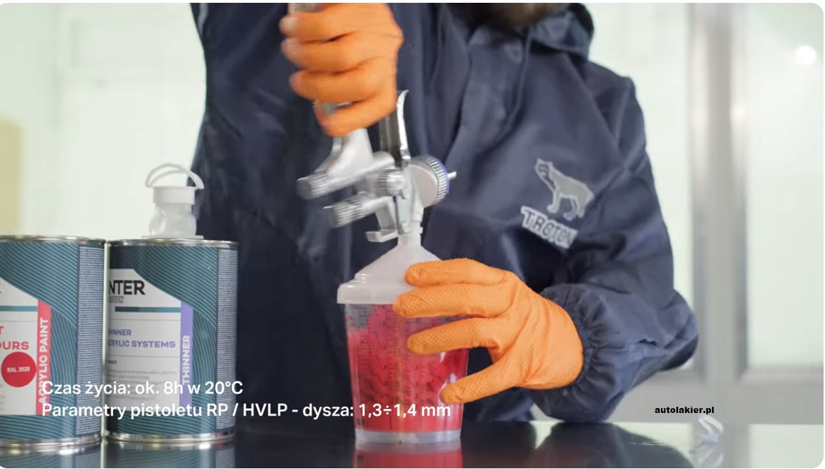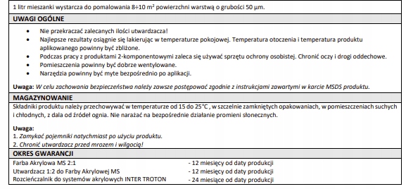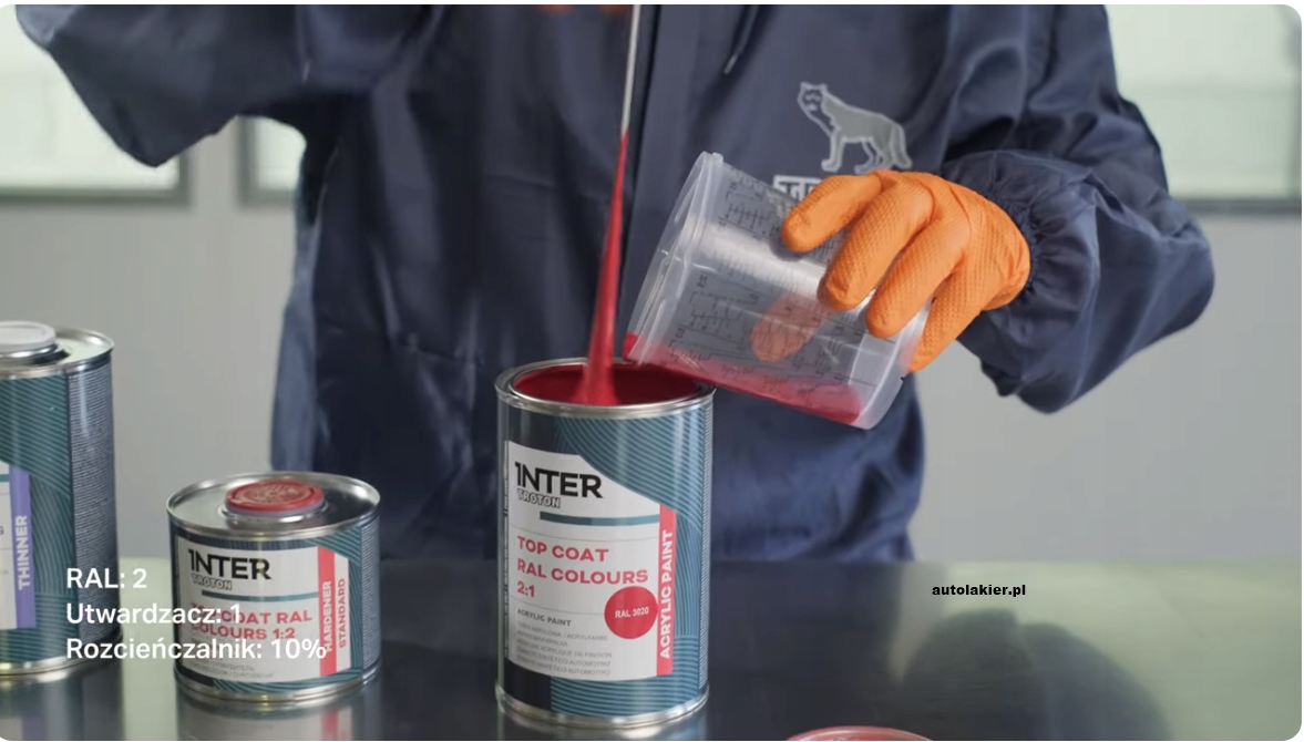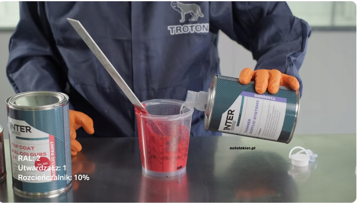 Do lakieru akrylowego należy dodać 50% utwardzacza MS i 10-20% rozcieńczalnika akrylowego.